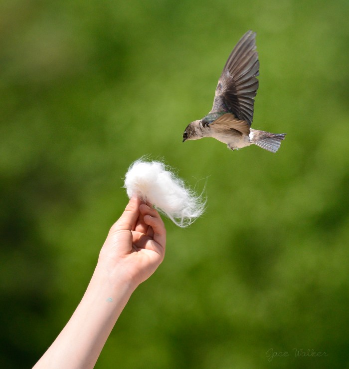 Springtime is by far my favorite season of the whole year. The birds, the plants, and all of the wildlife makes photography a blast for me. Singing birds and delightful flowers is what makes Spring so enjoyable! What an amazing time of the year. In this photograph, a female Violet-green Swallow accepts our offer to give her a great piece of nesting material. Photo taken on May 8, 2018.